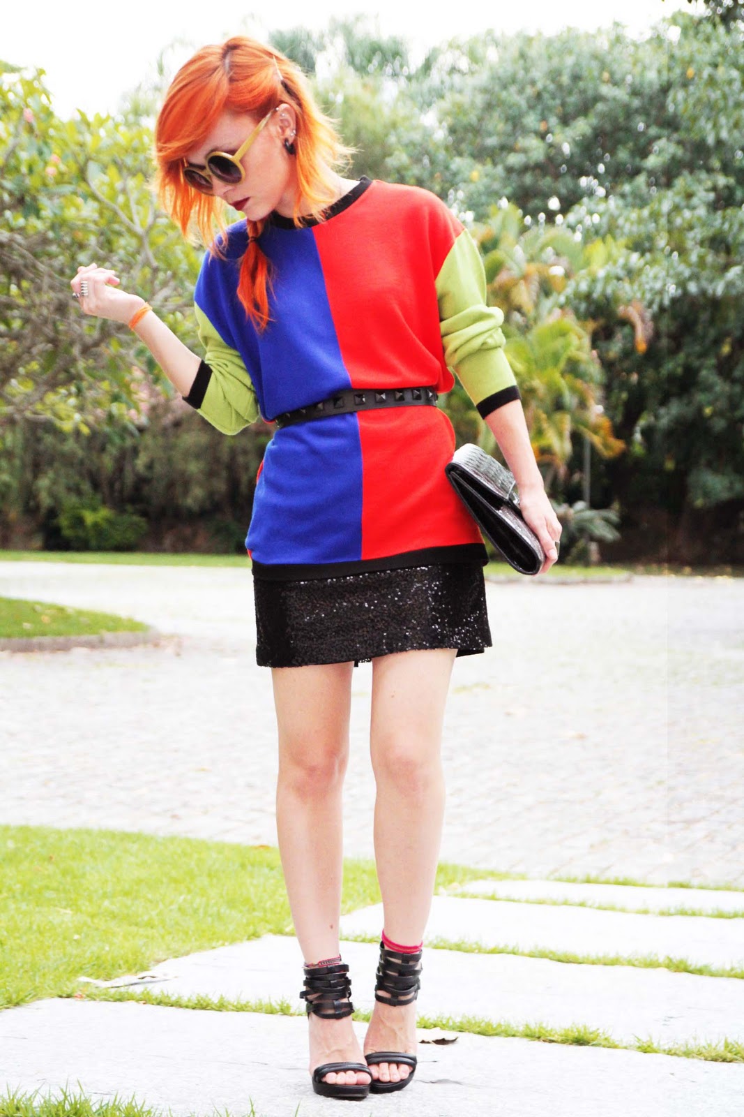 Well, once again I raided my mom's closet and found this wonderful and colorful sweater, and the skirt I managed to make last year, Its so funny to say last year for like two weeks ago! lol